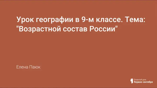 Цели урока: сформировать представление о возрастной структуре населения России; показать различия возрастного состава в отдельных регионах страны; выявить причины, влияющие на продолжительность жизни; продолжать формировать умения читать диаграммы, анализировать половозрастные пирамиды, работать с текстом учебника; развивать коммуникативные способности учащихся, речь; воспитывать патриотизм, продолжать повышать интерес к изучаемому предмету.