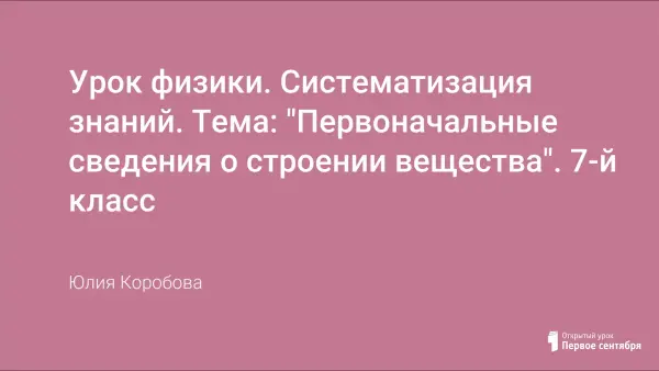 Последний урок по теме закрепляет пройденный материал, систематизирует знания о строении вещества.