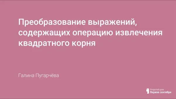 Цель урока: повторить свойства квадратных корней; познакомиться с правилами вынесения множителя из-под знака корня, внесения множителя под знак корня.