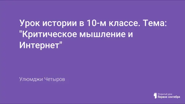 Урок истории в 10-м классе. Тема: "Критическое мышление и Интернет"