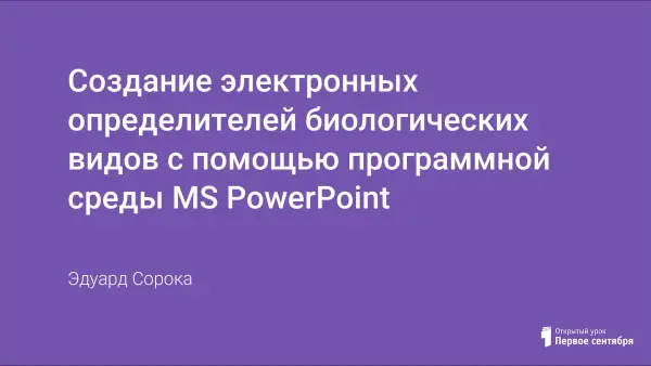 Интерактивные свойства программной среды MS PowerPoint позволяют создавать продукты учебного назначения с элементами управления, т. е. полноценные электронные образовательные ресурсы. В статье рассматривается дидактический потенциал приложения как инструмента для создания электронных определителей биологических видов с помощью настройки действия. В качестве образцов представлены образовательные ресурсы, предназначенные для определения предусмотренных школьной программой покрытосеменных растений.