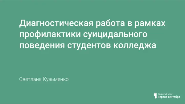 Для молодого специалиста диагностика суицидального поведения становится порой достаточно сложной задачей. В колледже диагностическая работа ведется по следующим направлениям: диагностика личностных черт, обеспечивающих психологическую устойчивость, проявлений расстройств адаптации и диагностика позиций и убеждений студентов.
