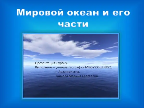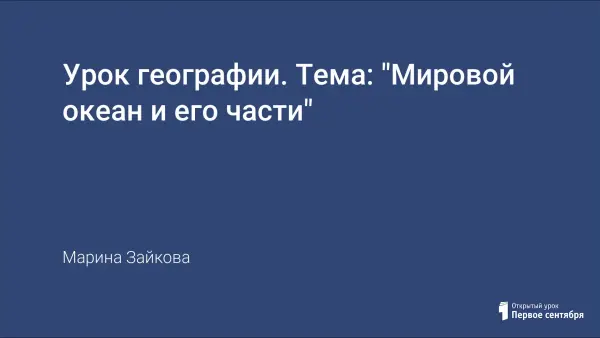 Урок дает общее представление о водах Мирового океана и его частях, знакомит учащихся с новыми понятиями и определениями, закрепляет уже известные термины, формирует умения работать с географической картой и составлять описание географического объекта по плану. Тема относится ко 2-му разделу "Оболочки Земли", 2-й теме "Гидросфера". В ходе урока применяются разные методы для оценки работы каждого ученика.