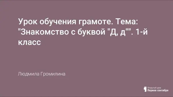 На уроке, совершая прогулку в лес, учащиеся знакомятся со звуками [д] [д'], буквами "Д, д".
