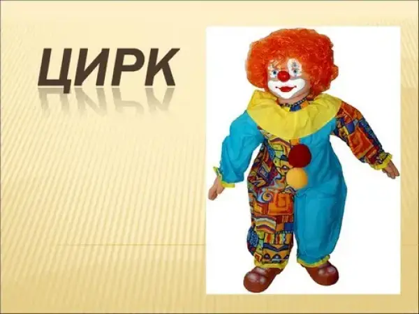 Занятие направлено на ознакомление детей с профессиями циркового искусства. Задачи развития определены в программном содержании и реализуются на протяжении всего занятия. На занятии для более эффективного усвоения материала используются: мультимедийная система. Основным персонажем на занятии является виртуальный клоун Гошик. В целом занятие воспринимается, как маленький сценарий на данную тему.