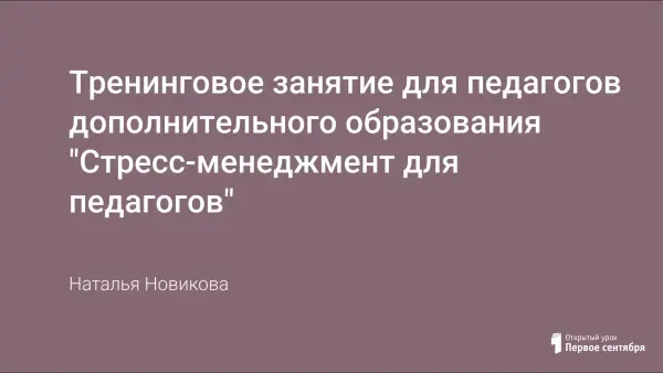 Тренинг систематизирует знания педагогов о причинах возникновения и способах преодоления стресса, отрабатывает практические приемы преодоления стресса.
