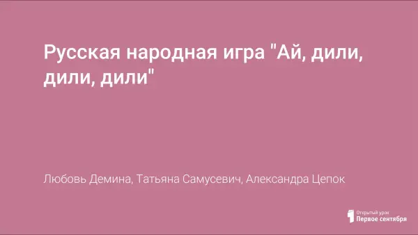 Предлагается вашему вниманию русская народная игра «Ай, дили, дили, дили» для среднего дошкольного возраста.