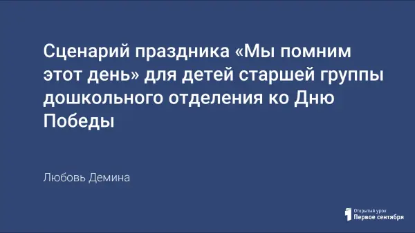 Представлен сценарий праздника ко Дню Победы для детей старшей группы дошкольного отделения.