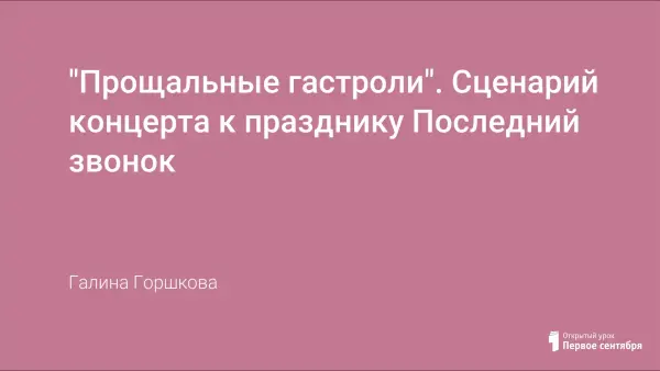 В статье представлен сценарий концерта, в котором выпускники в последний раз порадуют учителей и учеников школы своим творчеством и артистизмом. Многие репризы заимстованы на сайте amik.ru. Творчество порождает творчество, поэтому оставшиеся сценки и репризы ребята с удовольствием придумывают сами, вспоминая подробности своих школьных лет.
