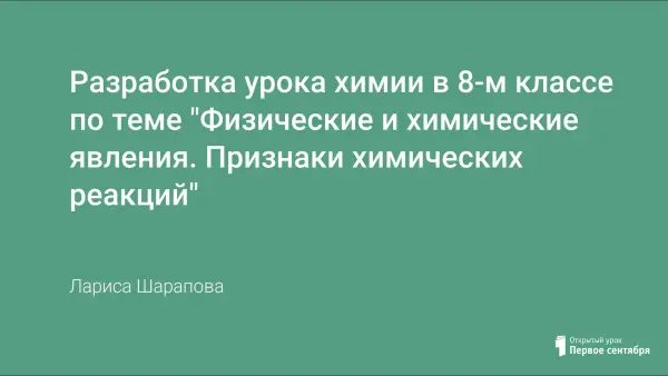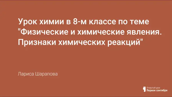 Урок проводится в 8-м классе по учебнику О.С. Габриэляна. Цель урока: выяснить признаки химических реакций; совершенствовать умение отличать химические процессы от физических. Задачи: на основе исследований сформировать представление о химических реакциях, развивать умение проводить лабораторный эксперимент, делать выводы опираясь на результаты исследования, самостоятельно искать ответ на поставленную проблему.