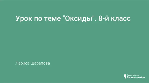 На уроке формируется понятие "оксид", говорится о значении оксидов в жизни человека и распространении их в природе. Компьютерная презентация делает урок наглядным, а проблемный подход и игровые моменты – интересным.