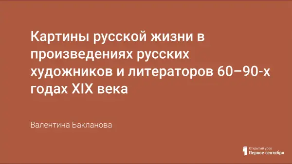 Цели урока: содействовать эмоционально-эстетическому развитию детей средствами комплексного воздействия изобразительного искусства, музыки и литературы, дать представление детям об искусстве 60-90г.г. ХIХ в., создать на основе триединства живописи, поэзии, музыки художественный образ жизни крестьянства, научить детей рассматривать и анализировать произведения литературы и живописи.
