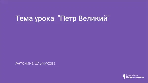 Цели урока: сформировать представление о Петре Первом - первом императоре; познакомить учащихся с преобразованиями Петра I; провести тематический контроль знаний по предыдущей теме через тестовые задания (актуализация знаний); систематизировать и обобщить свои знания по истории России и истории своего края через "ленту времени".