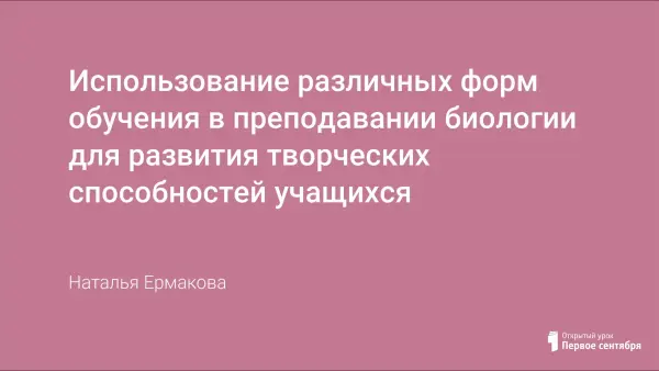 В статье рассмотриваются некоторые формы обучения биологии, способствующие развитию творческих способностей учащихся. Рациональное сочетание различных приемов и средств обучения помогает нам организовать так работу детей, чтобы интерес, как к предмету, так и ко всему живому на планете не пропадал на протяжении всех лет обучения. А это приводит к осознанному глубокому усвоению знаний и развитию мышления обучающихся.