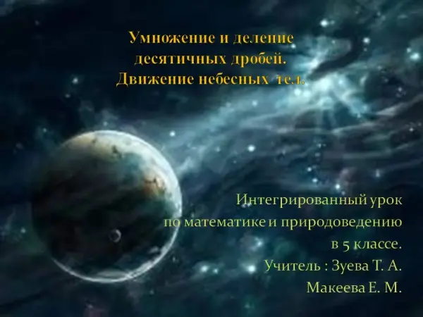 Интегрированный урок "математика + природоведение" по теме "Умножение и деление десятичных дробей. Движение небесных тел". 5-й класс