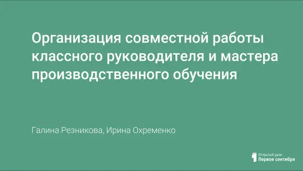 Организация совместной работы классного руководителя и мастера производственного обучения