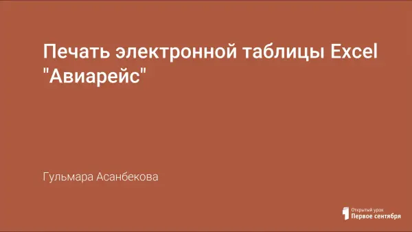 Практический урок имеет место по окончании изучения табличного редактора Excel в качестве самостоятельной работы. На уроке имитируется авиарейс на юг. Стюардесса на 3 языках объявляет учащимся посадку на самолет. Учащиеся пристегивают ремни на креслах. Стюардесса раздает каждому пассажиру путевки туристического агентства и предлагает их заполнить. Урок-полет предполагает проверку ЗУН учащихся выполнения различных заданий, применяя возможности табличного редактора Excel.