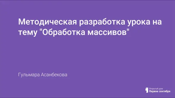 Урок посвящен обработке массива. Форма урока – командная по 5 человек – 5 заданий каждого этапа. На различных этапах урока проводится повторение пройденного материала в виде выполнения заданий, применяются различные формы контроля ЗУН: тестирование (программа My Test). Все задания урока автоматизированы, то есть запрограммированы (Delphi), и проверка ответов, и выдача результата, и подсчет баллов, поэтому победитель определяется сразу.