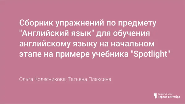 Сборник упражнений по предмету "Английский язык" для обучения английскому языку на начальном этапе на примере учебника "Spotlight"