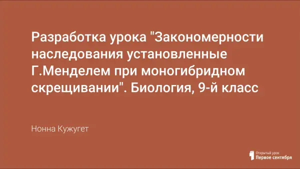 Цели и задачи урока: изучить основные понятия и символику, применяемые в генетике; раскрыть суть гибридологического метода изучения наследственности, сформировать знания о закономерностях наследования признаков; познакомить с законом единообразия гибридов первого поколения, законом расщепления; развивать умения и навыки по использованию генетической терминологии и символики, умение анализировать, устанавливать причинно-следственные связи.