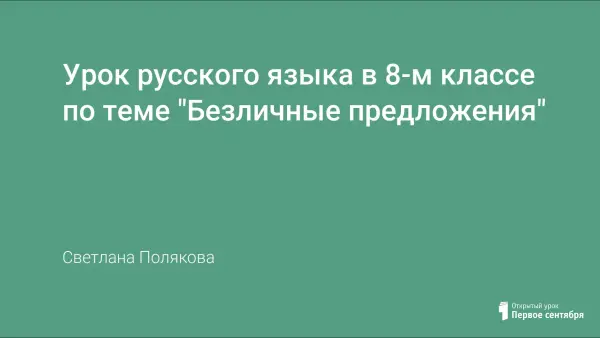 Цели урока: дать представление учащимся о безличных предложениях; показать способы выражения сказуемого в этих предложениях; развивать речевую культуру учеников.