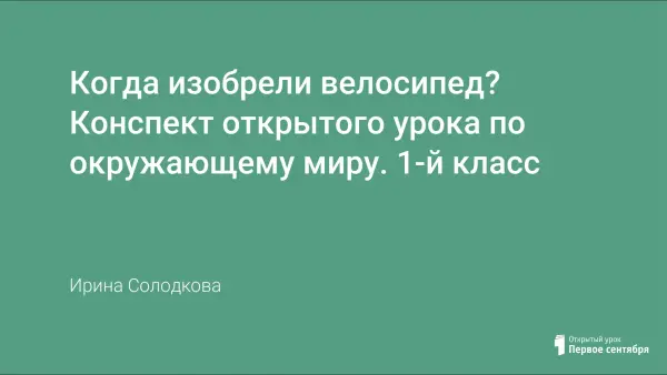 Представлен конспект открытого урока по окружающему миру в 1-м классе по теме "Когда изобрели велосипед?"
