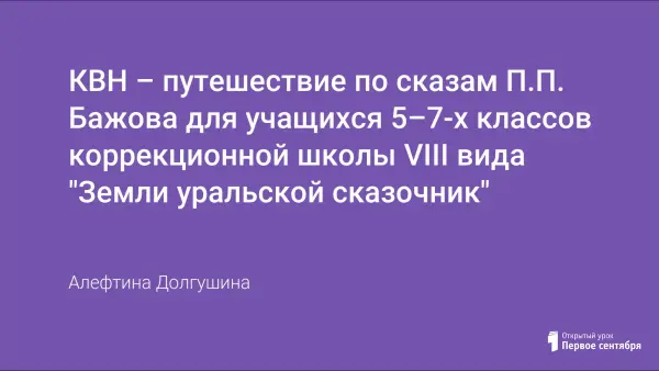 Мероприятие проводилось в форме КВН - путешествие по сказам П.П. Бажова для читательской группы детей 5–7-х классов коррекционной школы VIII вида с интеллектуальной недостаточностью. Выбор данной читательской группы объясняется тем, что по учебной программе по предмету чтения, дети знакомятся с творчеством П.П. Бажова, его сказами, поэтому возникла потребность еще раз закрепить полученные на уроках знания. Главным на мероприятии было создание атмосферы партнёрского сотрудничества, свободного общения, душевного комфорта, пробуждение интереса детей к чтению.