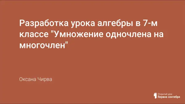 Цели урока: организовать работу класса по закреплению темы «Умножение одночлена на многочлен»; создавать условия для проявления познавательной деятельности учащихся.