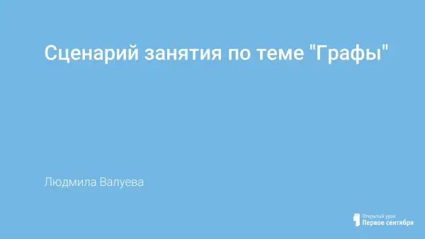 Представлен сценарий занятия по теме «Графы». Рассматриваются основные понятия теории графов; определение степени вершин графа; рисование полного графа с заданным количеством вершин; рисование графа, который является дополнением к заданному графу.