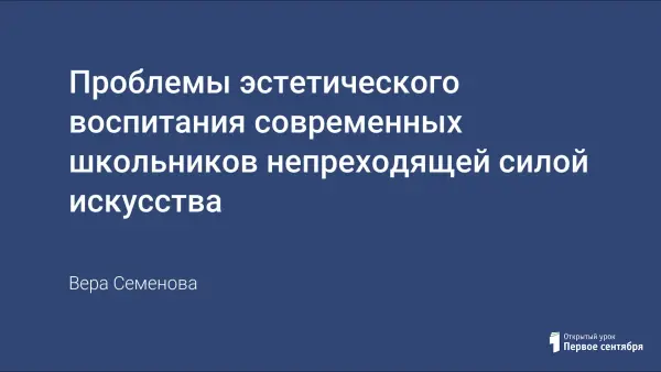 Аналитическая статья об актуальности проблем эстетического воспитания современных школьников.