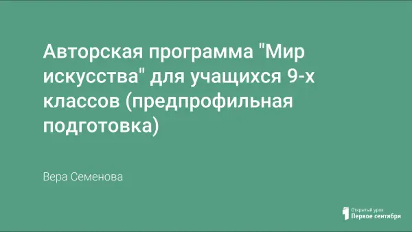 Программа элективного курса создана для предпрофильной подготовки учащихся по художественно-педагогическому направлению гуманитарного профиля. По функциональному предназначению ‒ учебно-познавательная, срок – полугодичная.