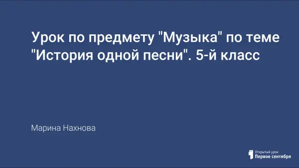 Урок проводился в день освобождения города Новороссийска от немецко-фашистских захватчиков. Это значимое событие в жизни города и его жителей, поэтому знакомство с "Песней о Новороссийске" воспринято учащимися как музыкальный памятник мужеству и стойкости солдата и труженика. В основе урока – творческие портреты композитора Г.Ф. Пономаренко, поэта К.Обойщикова и певицы Л.Г. Зыкиной.