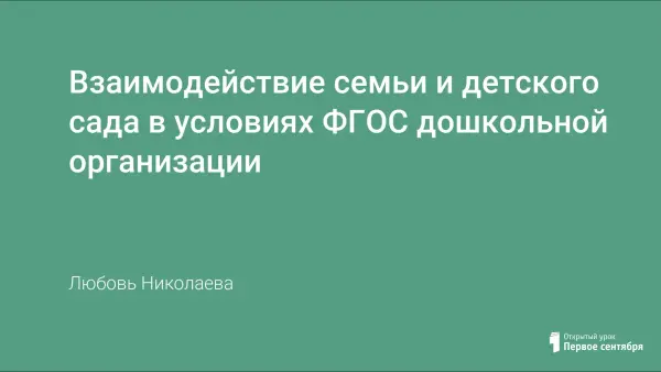Семья и детский сад – два важных института социализации детей. Воспитательные функции их различны, но для всестороннего развития личности ребёнка необходимо их взаимодействие. Цель педагогов – создать единое пространство развития ребенка в семье и ДОУ, сделать родителей участниками полноценного воспитательного процесса. Достичь высокого качества в развитии, полностью удовлетворить интересы родителей и детей, создать это единое пространство возможно при систематическом взаимодействии ДОУ и семьи. Успех в этом нелегком процессе воспитания полноценного человека зависит от уровня профессиональной компетентности педагогов и педагогической культуры родителей. В связи с этим возникает необходимость по иному взглянуть на проблему взаимодействия ДОУ с родителями с целью создания партнерских отношений «семья – детский сад» в совместном воспитании дошкольников.