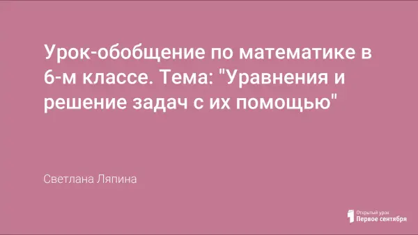 Урок содержит разнообразный материал и позволяет повторить все практические знания, умения и навыки по данной теме, обратить внимание на ошибки, чаще всего допускаемые учениками при выполнении заданий по данной теме. Предлагается подборка старинных задач, которые решаются с помощью уравнений и другим способом – арифметическим. Ученики 6-го класса с удовольствием находят чужие ошибки. Такие задания способствуют тому, что дети учатся не допускать собственные ошибки.