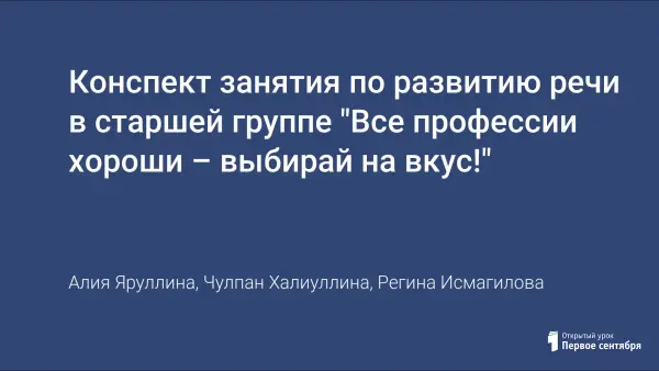 Конспект занятия по развитию речи в старшей группе "Все профессии хороши – выбирай на вкус!"