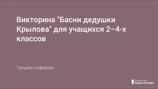 Разработка адресована учителям начальных классов. В основу этой литературной викторины положены знания школьников начальной школы по басням И.А.Крылова. Подобную игру можно проводить в рамках предметной недели или ко дню рождения великого баснописца.