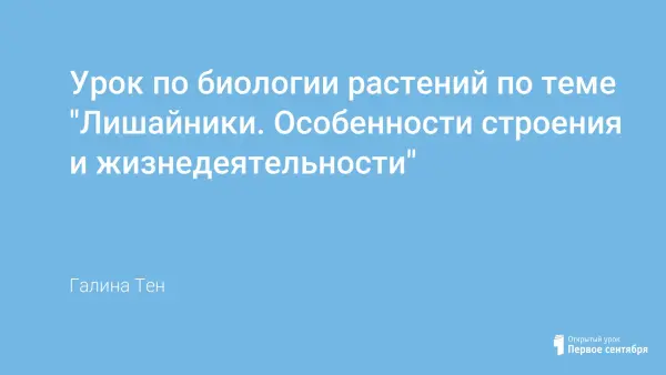 За урок необходимо дать особенности строения и жизнедеятельности лишайников. Многообразие лишайников. Значение лишайников в природе и жизни человека. Практическая работа, которая включена в урок позволяет учащимся усвоить типы слоевищ лишайников, позволяет узнать, как выглядят лишайники в природе. Кроме этого позволяет продолжить совершенствование навыков работы с природными объектами.