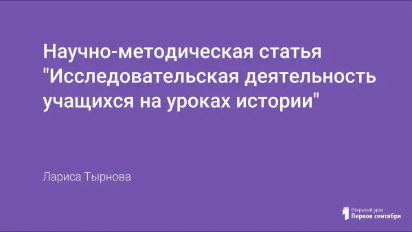 Исследовательская деятельность учащихся является необходимым элементом учебного процесса, так как развивает навыки самостоятельного поиска, анализа и обработки информации. Способствует развитию творческих способностей, а так же, воздействуя на эмоциональную сферу подростков, влияет на формирование у них ценностных ориентаций. Cтатья иллюстрирует применение метода исследования на уроках истории.