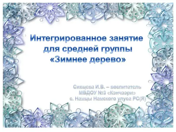 Интегрированное занятие для средней группы закрепляет представления детей о зиме. Обогащает представления о природе; воспитывает бережное отношение к живому. Предварительная работа: наблюдения за сезонными изменениями в природе зимой, беседа о характерных признаках, чтение стихов.