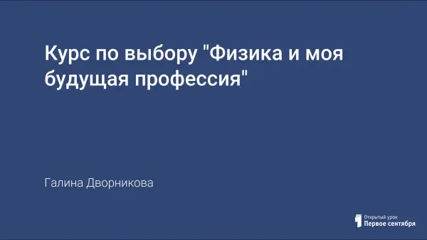 На занятиях курса учащиеся знакомятся с многообразием применения физики в различных областях профессиональной деятельности, исследуют на основе различных методов теоретического и эмпирического уровней познания, создают, а затем защищают собственные творческие проекты.