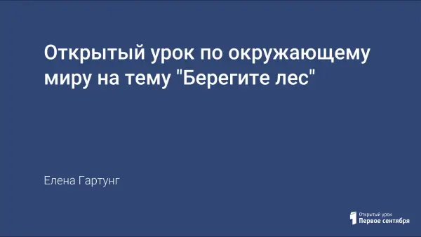 Целью этого урока является: раскрытие эстетического, познавательного, практического значения природы в жизни каждого человека и о необходимости бережного отношения к лесным богатствам; систематизирование знаний детей о лесе; ознакомление с основными правилами поведения в лесу и о взаимосвязях человека с природой.