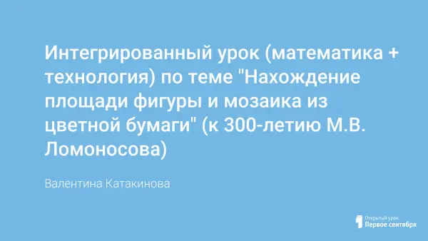 Интегрированный урок математики и технологии в 4-м классе. Цели урока: сформировать навыки вычисления площади фигур; развитие способностей начертить, вычислять, составить схемы; в интересной форме повторить, обобщить материал по данной теме (связь математики с технологией); познакомить с русским ученым М.В. Ломоносовым.