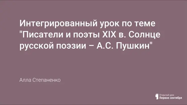 Интегрированный урок окружающего мира по системе Н.Ф. Виноградовой в 4-м классе с использованием презентации. Представленный урок посвящен изучению жизни и творчества А.С. Пушкина.