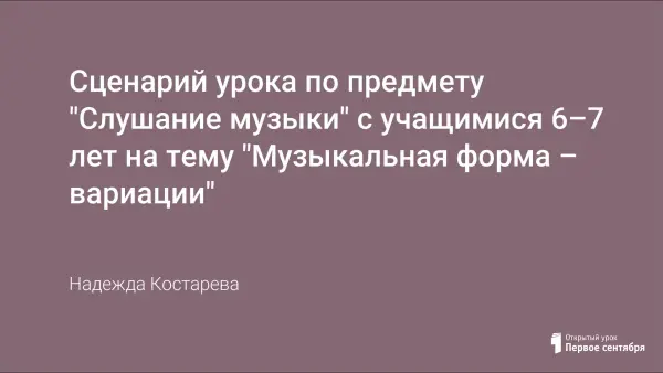 В ходе занятия дети в игровой форме знакомятся с вариациями (литературными, музыкальными) и особенностями их построения. Итогом занятия является постановка музыкальной сказки «Репка».