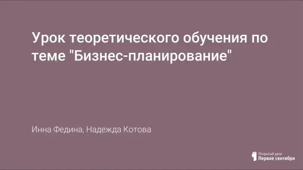 Урок теоретического обучения по теме "Бизнес-планирование"