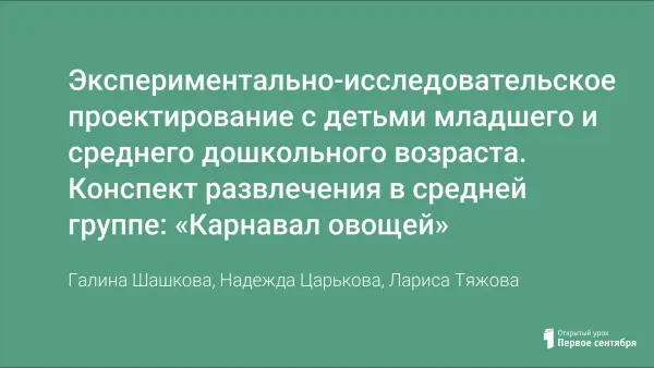 Экспериментально-исследовательское проектирование с детьми младшего и среднего дошкольного возраста. Конспект развлечения в средней группе: «Карнавал овощей»