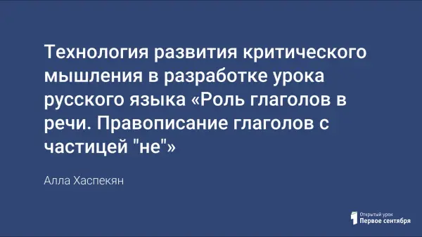 Первый урок по теме «Глагол», на изучение которой в 4-м классе отводится 34 урока. Урок служит проверке прочности фундамента знаний – повторению, систематизации и расширению знаний детей о глаголе как о части речи. Кроме обучающих целей урок направлен на развитие умений вести диалог, представлять перспективу освоения учебного материала. Содержание заданий урока наполнено заданиями, содержание которых направлено на формирование правильного поведения учащихся в определённых жизненных ситуациях.