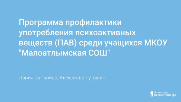 Программа профилактики употребления психоактивных веществ (ПАВ) среди учащихся МКОУ "Малоатлымская СОШ"