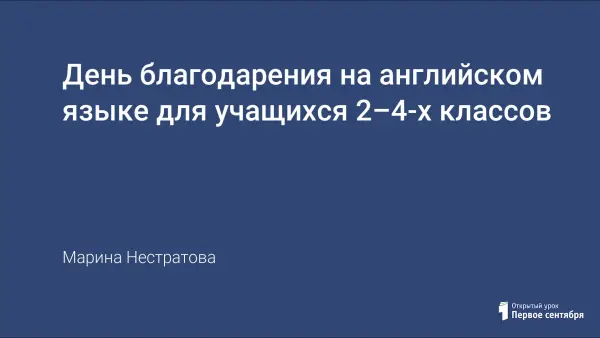 Сценарий внеклассного мероприятия День благодарения на английском языке для учащихся 2-4 классов. В мероприятии участвуют ученики 5-6 класса в роли рассказчиков и ученики 9-10 класса в съемке фильма. Получается познавательный и веселый праздник с рассказами, стихами и кинофильмом.