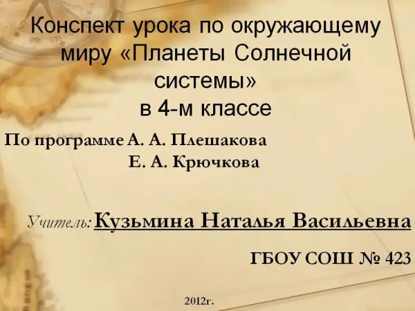 Урок окружающего мира. Тема: "Планеты Солнечной системы"